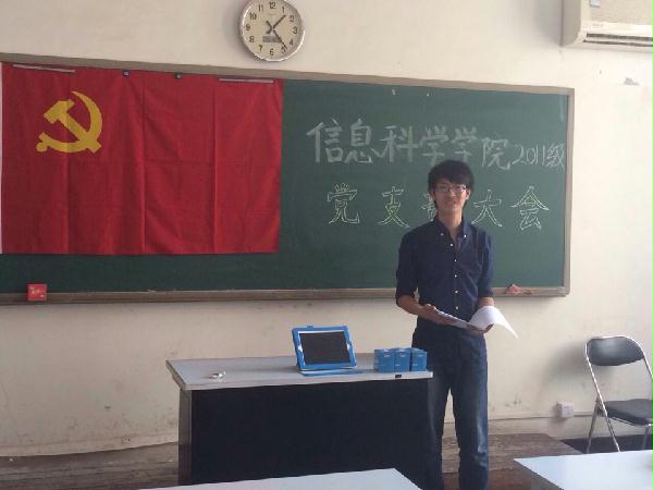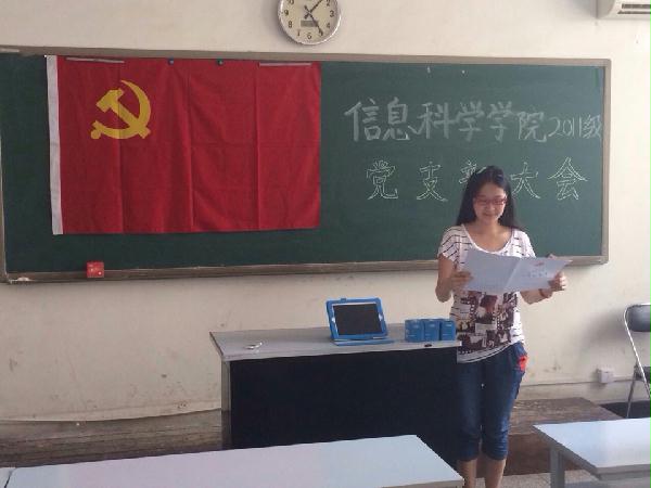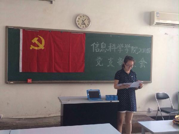 2014年7月4日12点50分,信息科学学院2011级党支部党员发展大会在主南318成功召开。2011级党支部书记张弛、5名2011级正式党员以及6名预备党员出席了本次会议。
