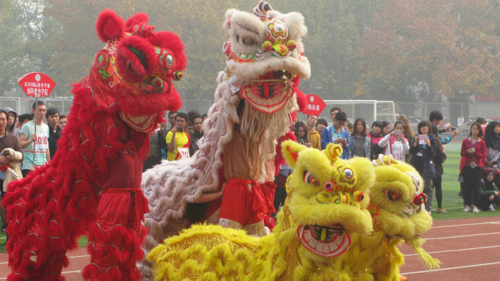 图一:比赛开始前的舞狮表演