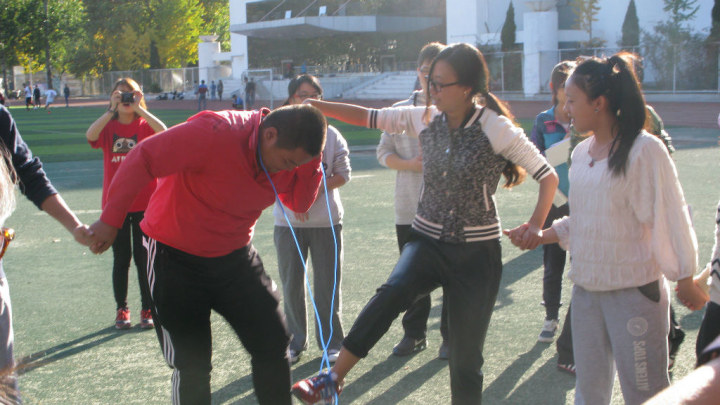 本次素质拓展由信息科学学院第十五届团总支学生会实践部部长刘博以及实践部干事赵雪羽担任主持人,在进行了基础的热身运动后,一系列精彩有趣的活动陆续开展。首先,在破冰游戏“we will rock you”的节奏中,各部门干事通过简单的游戏逐渐熟悉起来。随后,主持人将全部参与者分为四个小组,并以小组为单位进行之后的游戏。本次素质拓展比拼围绕着“刷刷朋友圈”、“hold me in the dark”、“你也蛮拼的”、“吉祥三宝”四个拓展项目顺利开展,每个小组的同学都在为那枚象征集体荣誉的活动奖章而奋力拼搏,力争上游。在“hold me in the dark”游戏环节中,每组派出一半队员参赛,另一半队员站在场外保护。游戏准备环节,参赛队员站成一个圆圈,并面朝外侧闭眼,原地转三圈,根据主持人的指令,向前迈出步子。随后游戏正式开始,各组参赛队员根据事先讨论好的游戏策略,在不知晓周围具体环境的情况下,紧闭双眼小心摸索着寻找自己的同伴,哪一组在最短时间内聚齐全体成员则该组获胜。游戏既考验了队员们的判断能力、执行能力,又展现了成员之间的默契程度。
