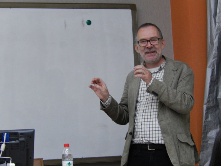 晚上7点,讲座正式开始。首先,阿尔内教授从“What’s a GF”引入,并分别从词法、句法、语义等方面向同学们介绍了什么是语法框架。接着,教授以“What can you do with GF”为主讲内容,向同学们说明了GF应该怎么使用。阿尔内教授以多种国家语言为例,向同学们解释了语法框架不仅能用于相对于google等编译器能更加保证语义和语法准确的特定领域的翻译系统,还能被应用于查询系统、口语对话系统和语言教学系统。接下来,教授从中英文以及其他几种国家语言的特点与差别分析了语法框架对覆盖面广的自然语言处理的适用性。随后,阿尔内教授还向同学们演示了GF的编译过程,耐心为同学们讲解各个步骤以让大家明白如何利用GF来提高自己的学习语言的能力。