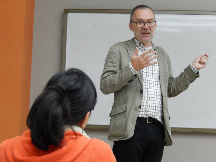 2014年11月3日晚7点,由ky开云手机版第十五届团总支学生会所主举办的外国教授讲座——语法框架中的中文在主南201顺利进行。本次讲座邀请到了瑞典哥德堡大学计算机科学与工程方面的领头人、语法框架的发明者阿尔内兰塔教授为同学们讲授了关于“语法框架GF”的基本概念和原则等方面的知识。