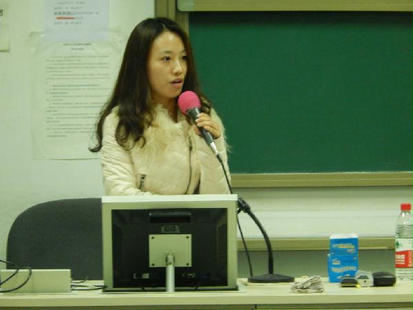 接下来,已签订了阿里巴巴产品经理的刘自慧学姐从“未来就业”、“实习”等方面的分享了自己的经验。刘自慧学姐的讲话以两张与导师、同学的合影开场,回顾了自己的大学生活。接着,刘自慧学姐从出国、考研、工作的选择开始,告诉同学们无论做怎样的选择,都不能只停留在“想”的迷茫层面,应该提前做好准备。然后,刘自慧学姐向同学们提出了几点考研的建议。她提出同学们应该有主见,不能随大流盲目考研的看法。其次,她因为认为确定好心仪的学校和专业,并且在考研复习中多关注报考学校的专业要求与内部信息也是十分重要的。