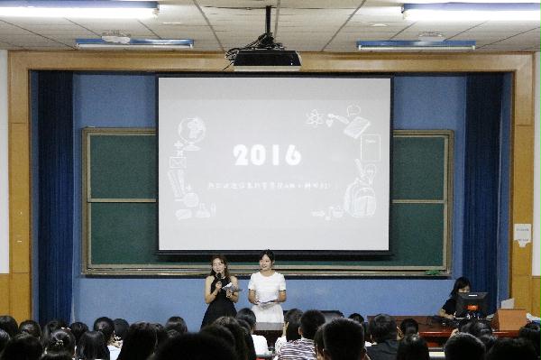 范皓玥学姐和高忠兰学姐主持本次活动介绍会