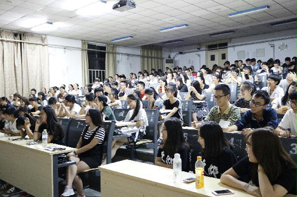 紧接着,两位学姐从文体季、学术季、分享季三个方面为大家介绍了学院的各种活动。迎新晚会、院会素质拓展、趣味运动会、宿舍评比、新年喜乐会、毕业生晚会等文体活动,使大家在繁忙的学习中放下了紧绷的心,增进了同学之间的情谊。新生口语大赛、技术培训、微电影大赛、四六级模考、期中总结大会、数学建模大赛等学术活动,为大家提供了一个学习的平台,使同学们可以在学术上相互切磋,共同进步。老生对新生说、IT精英讲坛、“风云信科人”校友经验分享会等分享活动,又为大家提供了一个可以和优秀学长学姐面对面交流的机会,从生活、学习、工作诸多方面和大家分享经验。同学们对这些活动表现出了十分浓厚的兴趣,现场气氛活跃。