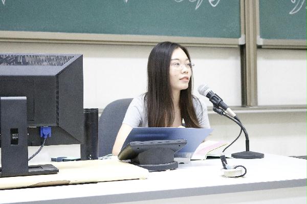 随后,信息科学学院第十七届团总支学生会副主席柳叶学姐作为学生代表发言。柳叶学姐参考了自己的军训体验,围绕食宿、气候、活动等方面,为大家详尽、多方面地描述了军训的情况,现场同学表示受益匪浅。