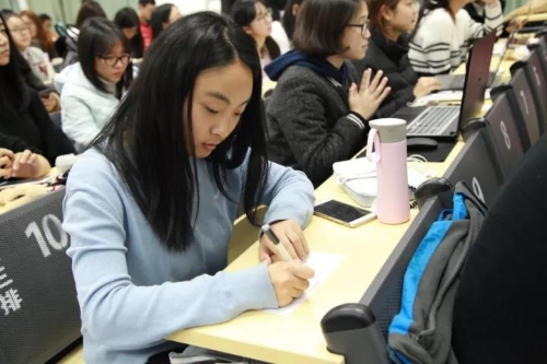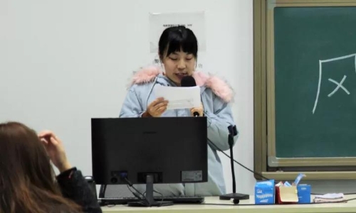 首先是来自12级计算机专业,现就读于我校英语笔译专业的曹语乔学姐,她从备考、复习以及考后学习三个方面进行介绍。跨专业考研难度很大,她强调在如何选择专业的问题上个人的兴趣最为重要。
