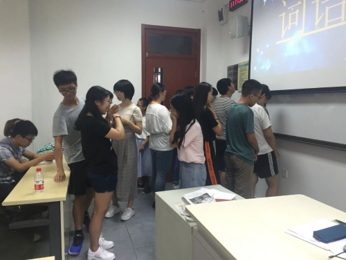 活动还设置了奖惩环节。获得胜利的小组得到了具有北语特色的明信片、文件夹,而被淘汰的小组则要接受各式各样的惩罚。几轮游戏结束后,班会接近了尾声。