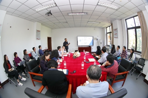 首先,荀恩东院长对信息科学学院的概况、发展目标和近期工作进行了介绍,重点汇报了语言智能研究院的筹建工作。语言智能研究院将聚焦北语特色,专注于人工智能在语言信息处理、认知科学、语言习得、语言资源等领域的研究,建设成为国内一流、国际知名的语言智能研究机构。现拟定于 2019年6月15日举行成立仪式,本月已经启动“语言智能研究院系列学术活动”,其中包括5月18日举办的“纪念马希文诞辰80周年学术研讨会”,成立前后的四场“语言智能专家讲坛”和信息科学学院的“科研活动月”等系列活动。