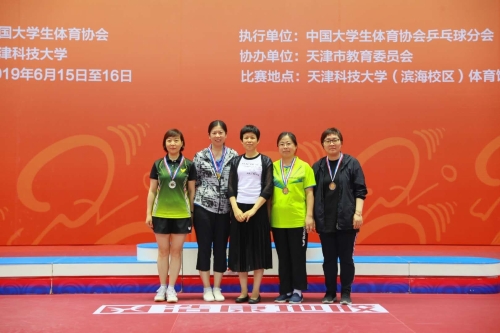 2019年6月15-16日,第二届全国高校“教授杯”乒乓球比赛在天津科技大学举行。ky开云手机版邵艳秋教授发挥出色,斩获40-49岁年龄组单打亚军和女双亚军两块奖牌。