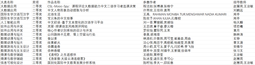 2023年(第16届)中国大学生计算机设计大赛已经落下帷幕。北语学子表现优异,共有15件作品在全国总决赛中获得奖项,其中许雨欣等同学的“中文人物形象自动提取与分析”等8件作品荣获二等奖,陈欣予等同学的“宝贝鱼的中文故事”等7件作品荣获三等奖。