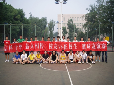6月26日,信息科学学院建院十周年庆典大会隆重举行,同日下午,“信科十年,薪火相传——校友vs在校生篮球友谊赛”在北语篮球场举行。