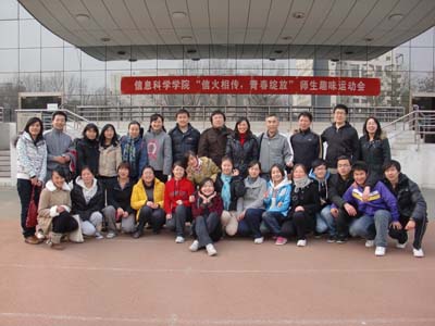 经过紧张激烈的比赛,最终,09信管一班4队荣获团队障碍赛的冠军,而团队跳大绳比赛的桂冠则由09计算机一班1队摘得。持续了将近两个小时的趣味运动会接近尾声,到场师生仍然意犹未尽,纷纷合影留念。“信火相传,青春绽放”趣味运动会圆满落幕。